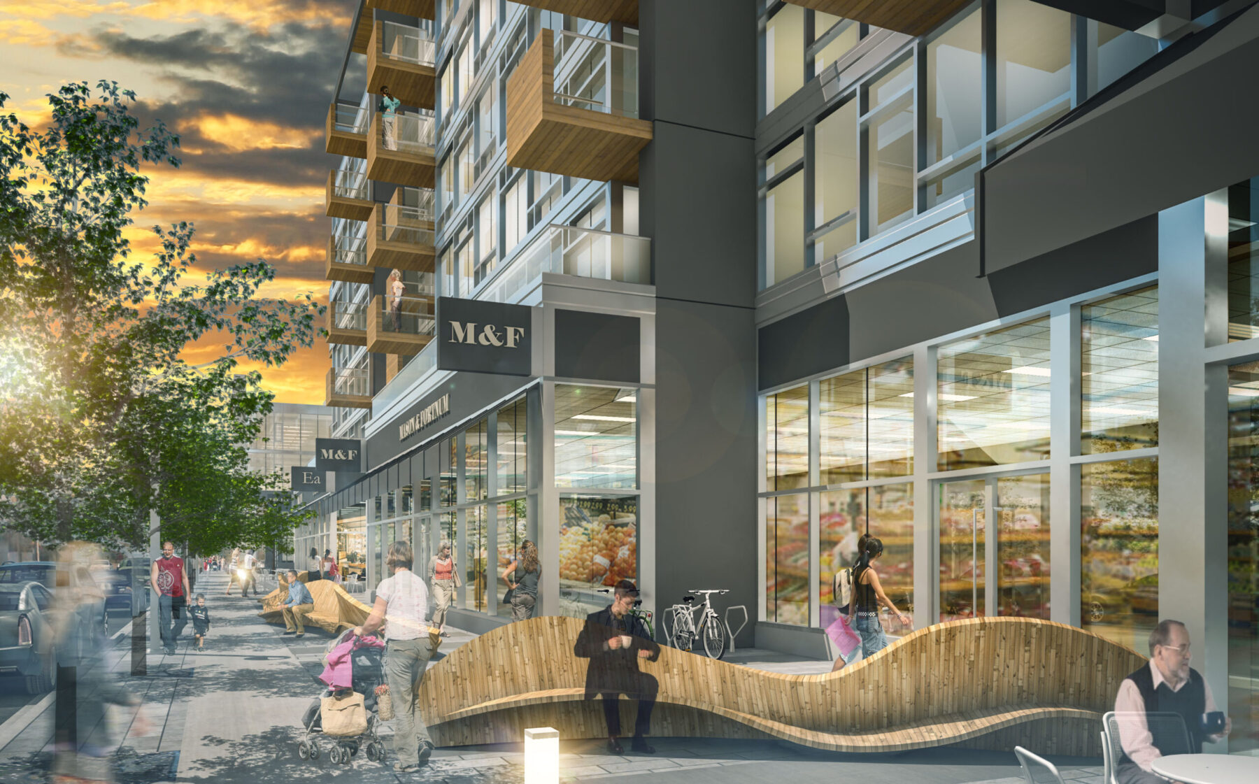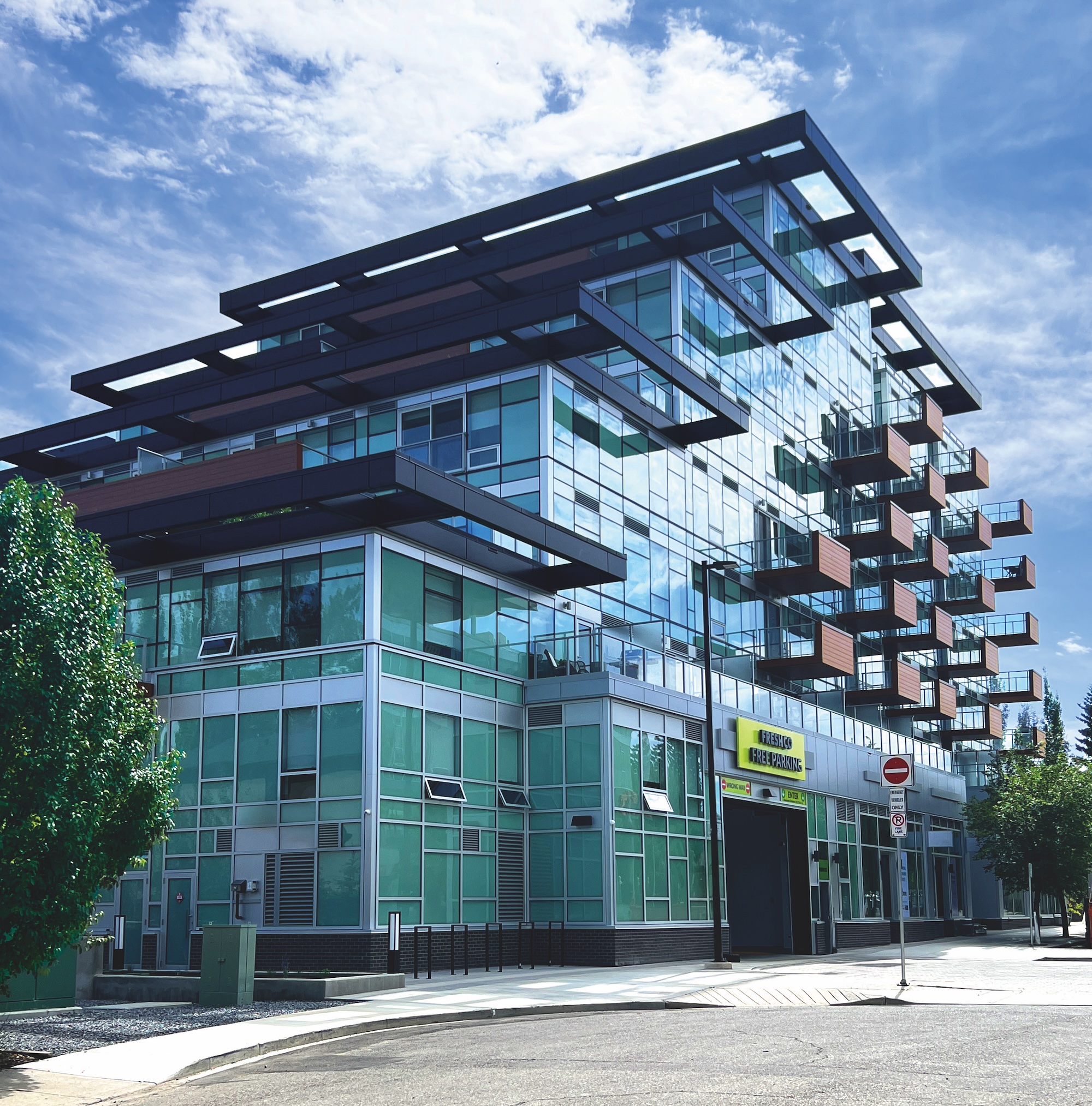 Working with Truman Developments, S2 was commissioned to explore redevelopment options for the West Hillhurst site. Along with the home of the new Kensington Legion building, a separate 10-storey mixed-use development containing both residential and retail spaces is envisioned. The building will provide new housing options and community amenities reshaping the urban landscape of the area. The proposed building contains over 26,640 sf (2,475 sq m) of retail space on the lower level, including a boutique organic grocery store, and approximately 213,878 sf (19,870 sq m)of residential units ranging from one-bedroom suites to penthouse units. Several innovative design elements include a roof-top podium and garden that cover the at-grade delivery and commercial parking space on the north side of the development, as well as the striking stepped profile of the building that reduces shadows in an effort to minimize the impact on neighbours.
