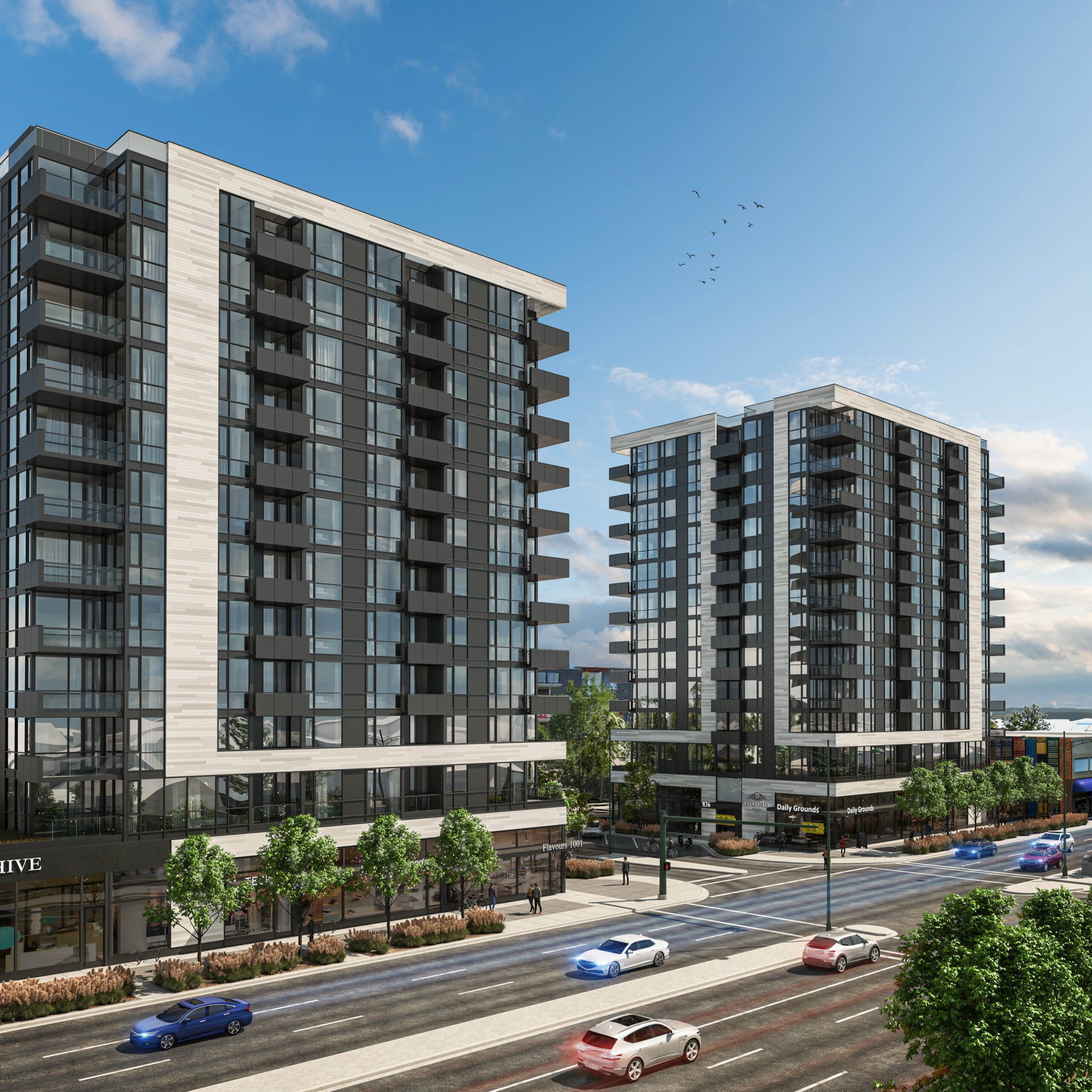 S2 was engaged to develop two ten-storey residential condominium towers on 16th Avenue in northwest Calgary. While the towers are mirrors of each other from the second floor to the roof, they have slightly different site requirements due to variations in grade and accessibility.