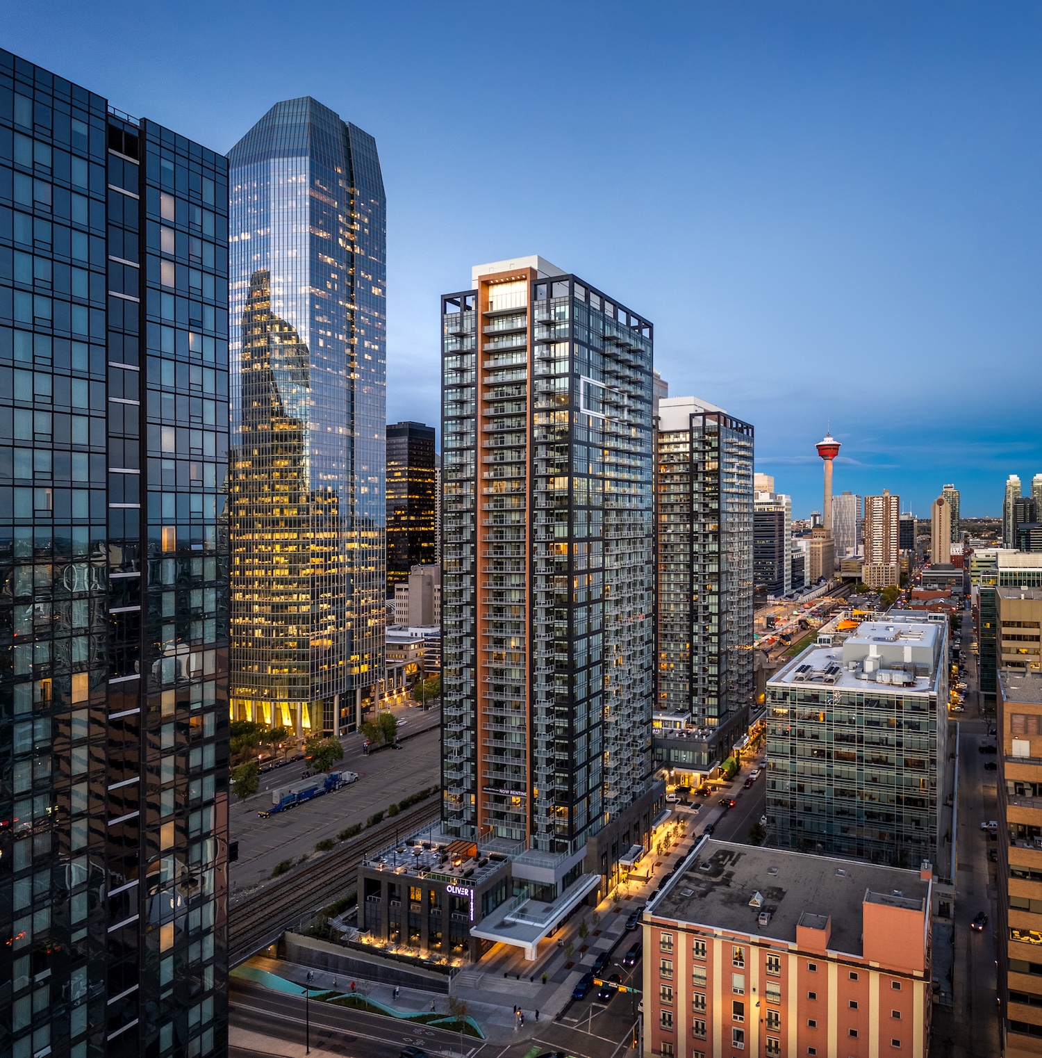 Oliver West Tower is a beacon of urban elegance and low-maintenance luxury in Calgary’s Beltline district. This 35-storey residential building offers 452 suites, including one- and two-bedroom options and upscale executive suites. Each suite reflects contemporary luxury, featuring stunning views and high-quality finishes.