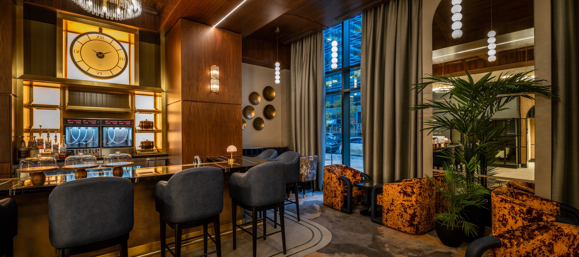 Residents enjoy a range of upscale amenities, such as a fitness centre with a golf simulator, a lounge for social gatherings, and a lobby bar that fosters community. The adjacent Oliver East Tower and proximity to local conveniences enhance the vibrant lifestyle of the Beltline.