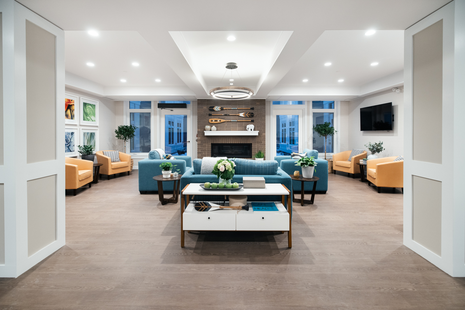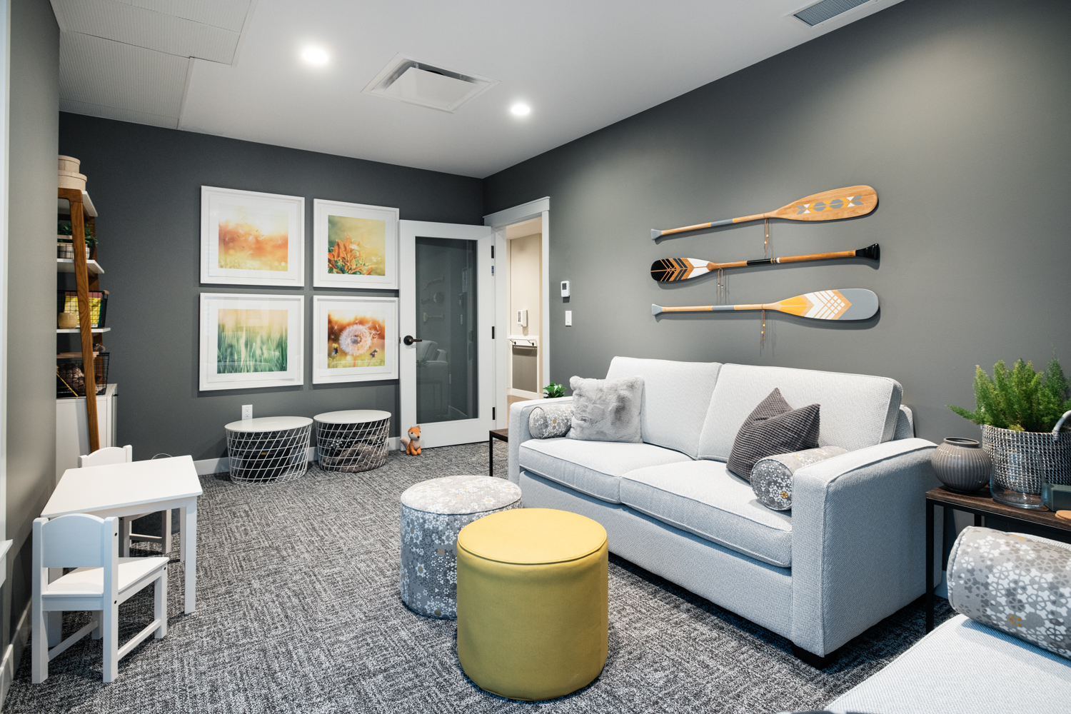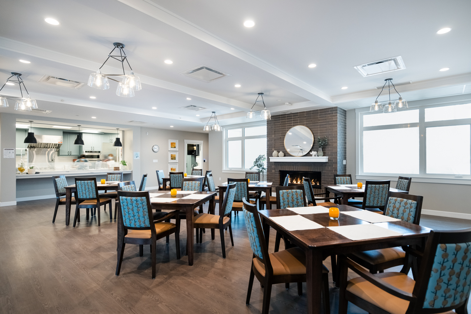 The Roozen Family Hospice Centre spreads across two above-grade floors connected by a central support area. Each resident room on the main floor is positioned to maximize access to natural light and outdoor views, creating a therapeutic atmosphere. On the second floor, you can find various facilities, including dining areas, a family-style kitchen, administrative offices, and counselling areas. The basement level, illuminated by expansive window wells, is reserved for community programs. The design of the hospice centre is barrier-free, meaning that residents with limited mobility and those in need of extensive care can easily access the facility.