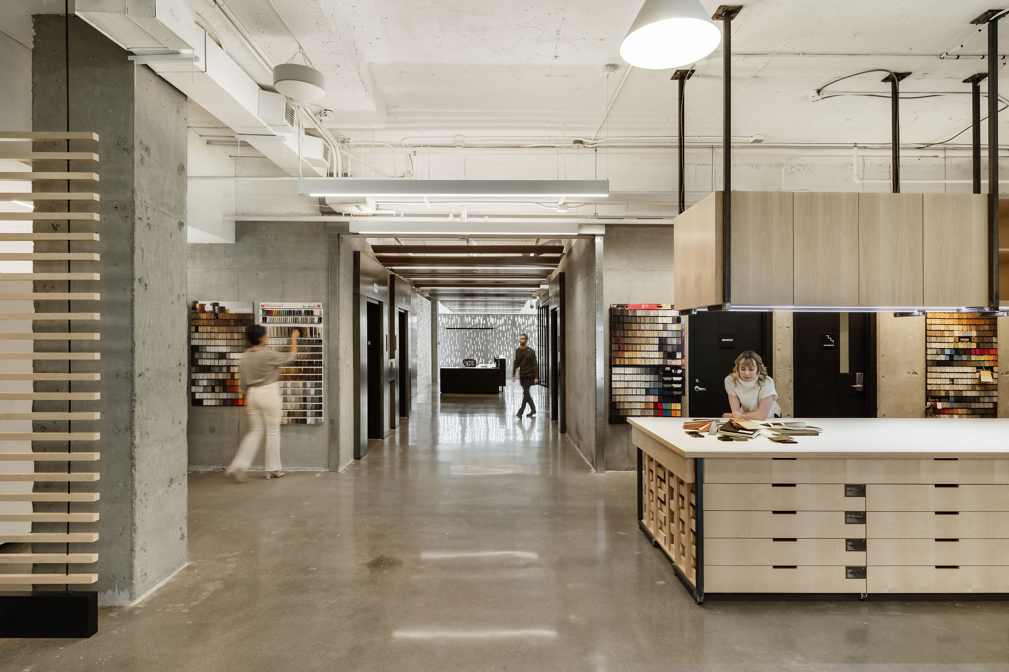 We curated a diverse range of spaces, offering choices for focused work, collaboration, learning, socializing, and relaxation. The open-office floor plan, carefully designed with acoustics and aesthetic appeal in mind, features workstations grouped in smaller pods and strategically placed private offices. Throughout the studio, we celebrate the craft of our profession through exposed construction details that reveal the intricacies of our work.