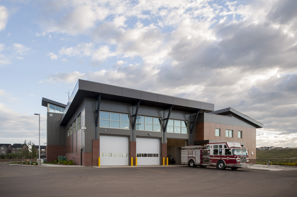 The Symons Valley Fire Station redefines modern fire station design, prioritizing rapid response times and community resilience in the face of emergencies. This LEED Gold-certified, three-bay station integrates into Calgary’s emergency response network, serving as both a vital first-response asset and a community crisis management hub. Engineered for complete self-sufficiency, the station can operate independently of city utilities thanks to a built-in generator with 100% redundancy. Its sustainable design includes a stormwater recharge pond that feeds greywater systems within the station. The station’s “rustic” aesthetic blends with the Symons Valley neighbourhood, reflecting the surrounding buildings and design guidelines. The station’s design prioritizes efficiency and functionality, with features like overland drainage and rooftop mechanical equipment contributing to both cost savings and operational effectiveness.